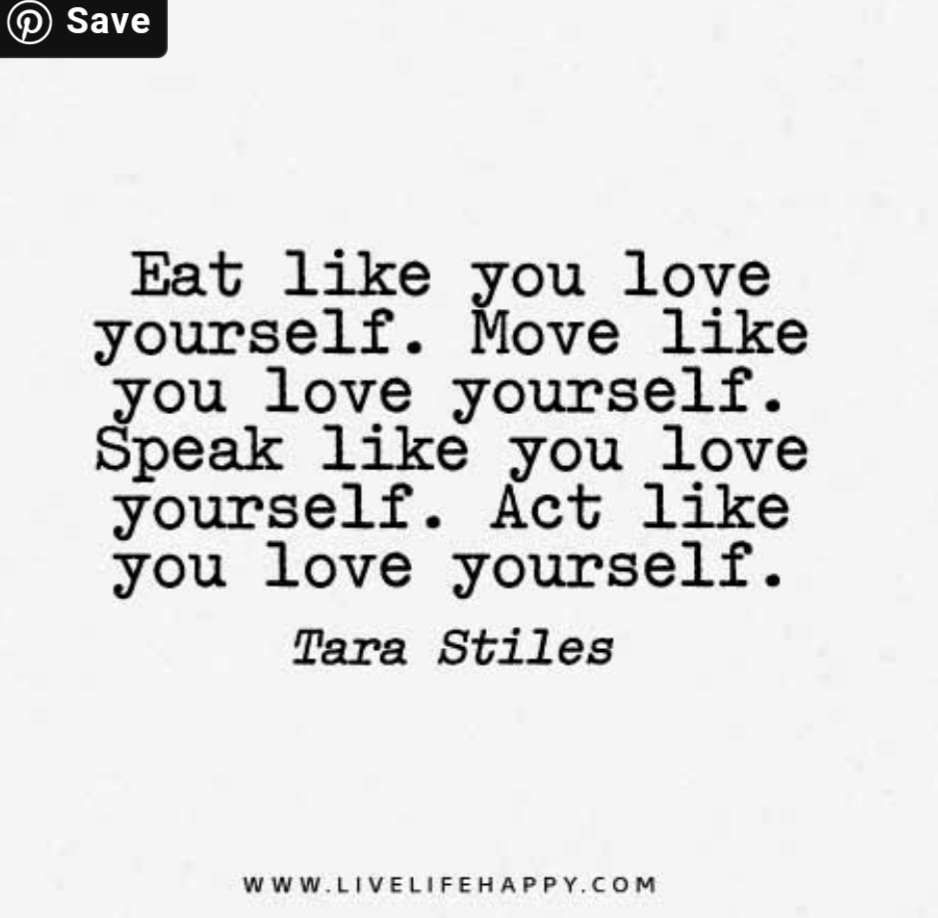 That being said you have to “Eat like you love yourself. Move like you love yourself. Speak like you love yourself. Act like your love yourself. Love yourself.” Your whole mindset has to flow in such a way that you put self-care and love at the top of your list.