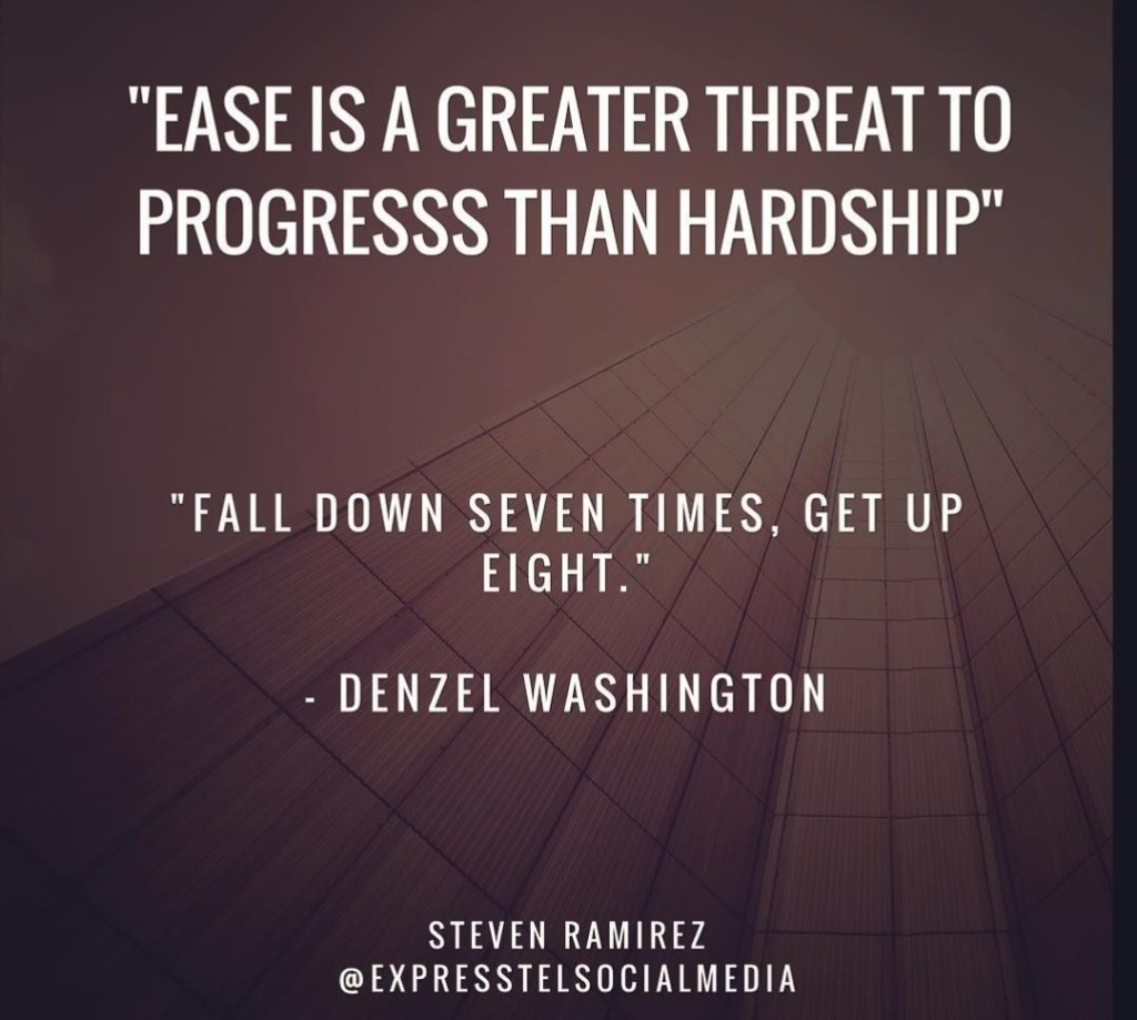 Plenty of people go through this life just trying to make it day by day. But, that is not living. That is merely existing. You have to take that leap of faith and get to the other side. That is where your greatness resides. “Ease is a greater threat to progress than hardship.”-Denzel Washington
